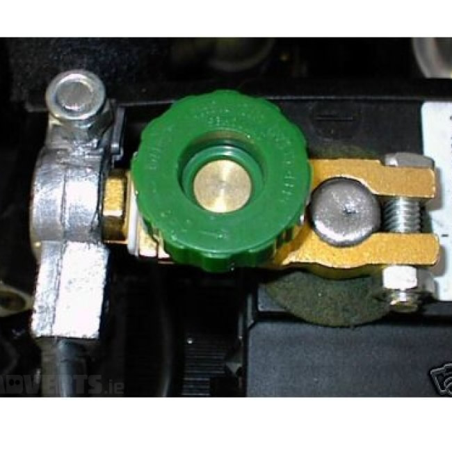 Mount the switch directly on the NEGATIVE terminal of the battery and simply turn the wheel a half turn to connect / disconnect the battery.